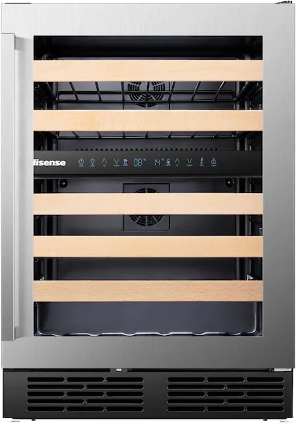 The Hisense 46-bottle dual zone wine fridge is designed to showcase and preserve your valuable wine collection. With 5 smooth-glide shelves, it makes it easier to find tonight's wine to pair with your meal. It's reversible door makes it ideal for any layout - no matter what room you entertain in. And with it's premium finish, your wine will be stored in style.Read More