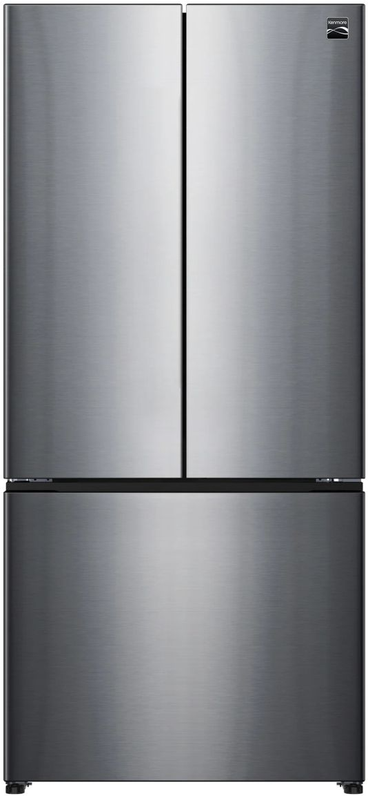 Kenmore's EnergyStar-certified 18 cu ft French door counter depth refrigerator offers a modern design with clean, flat doors, recessed handles, and sleek fingerprint-resistant stainless steel finish. The versatile interior features full-width adjustable glass shelves, clear door bins, and dual humidity-controlled crispers to keep your produce fresh, plus a spacious 5 cu ft frost-free freezer. Electronic temperature controls and Accela Freeze and Smart Temp modes ensure optimal cooling.Read More
