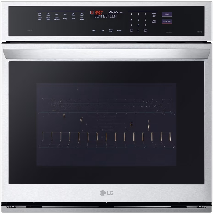 Raise the bar with a wall oven that delivers premium, built-in style to complement any kitchen aesthetic. Using a third heating element attached to the fan, LG’s True Convection technology distributes precise heat and hot air circulation to ensure your food is cooked evenly on every rack. Enjoy deliciously browned and crispy meals, plus faster preheating and cook times.Read More