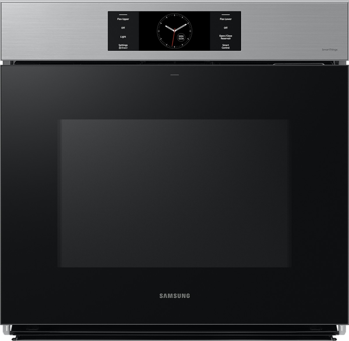 The SmartThings App lets you monitor and control the oven settings from your smartphone. You can check and adjust settings and receive alerts. You can also control it with your voice using a voice assistant, like Samsung Bixby.