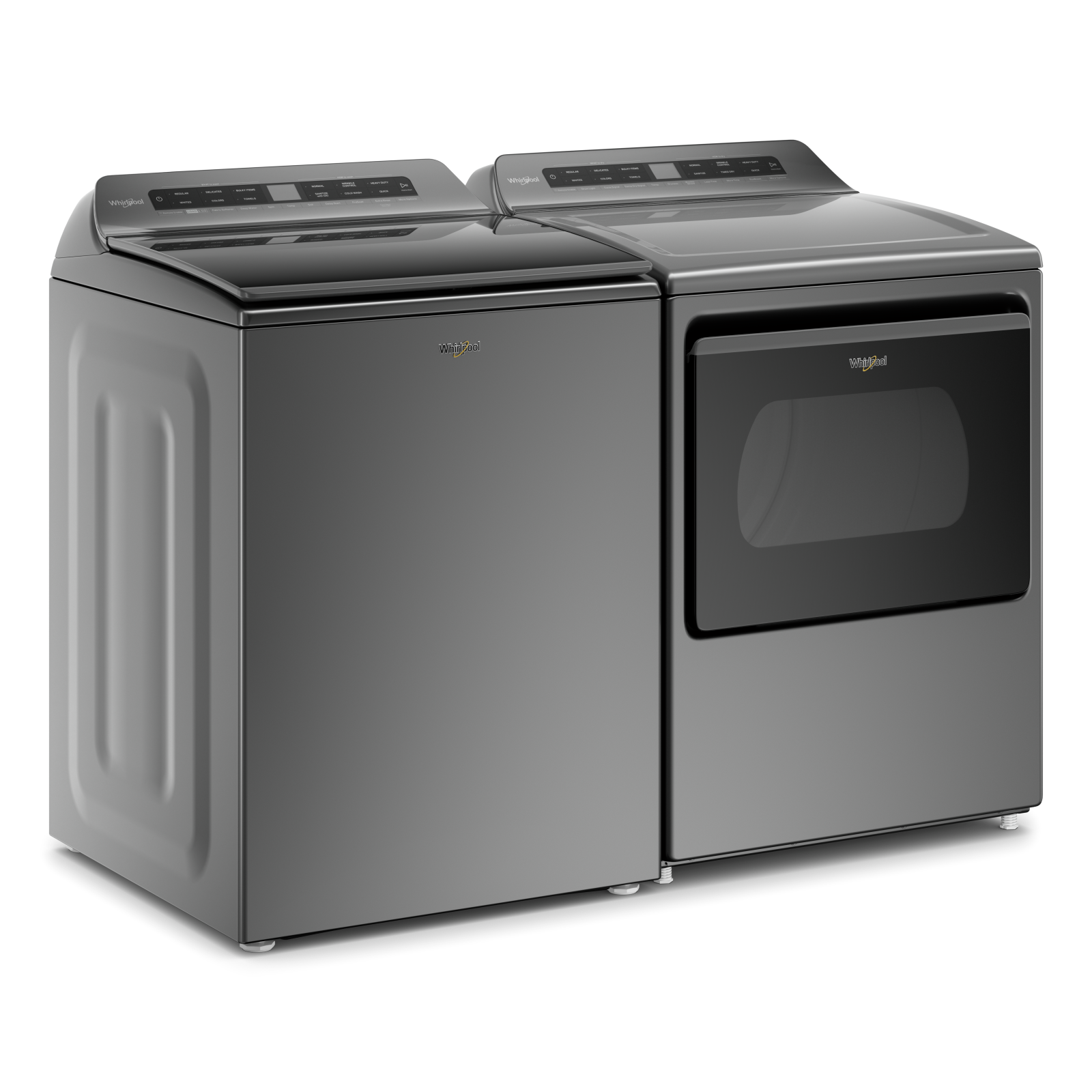 Whirlpool® Laundry Pair-Chrome Shadow with a 5.5 cu. ft. capacity washer and 7.4 cu. ft. capacity electric dryerRead More